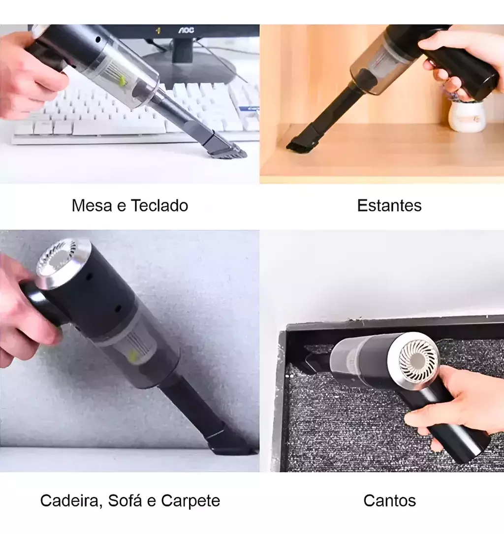 - Ideal para pequenos espaços: Perfeito para limpar teclados, estofados, mesas, carros, eletrônicos e cantinhos de difícil acesso.